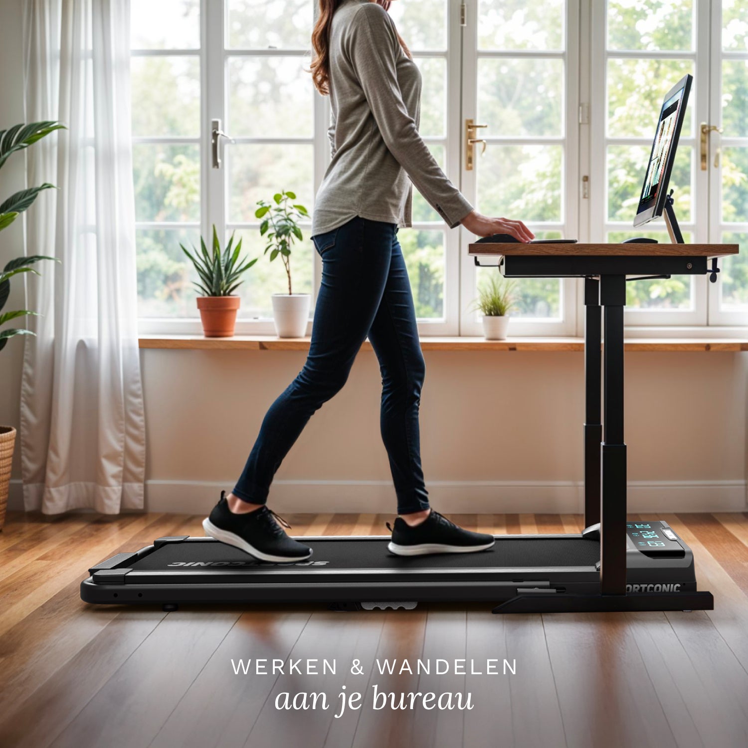 Skift ubesværet mellem stillesiddende arbejde og aktiv bevægelse uden at afbryde din rutine. Løbebåndet passer perfekt under et hæve-sænkebord og giver dig mulighed for at gå, mens du arbejder, mødes eller foretager opkald.