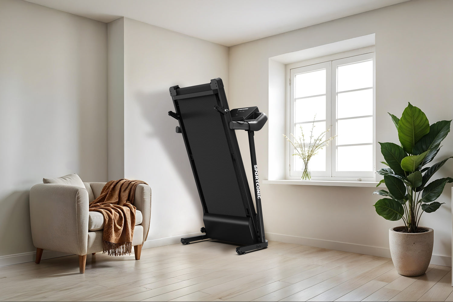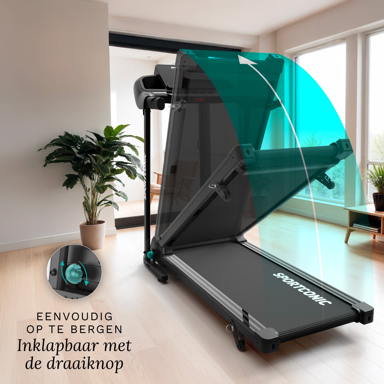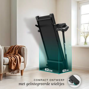 Efter brug kan løbebåndet nemt opbevares på få sekunder. Det kan nemt foldes sammen, og de integrerede transporthjul gør det nemt og ubesværet at flytte det.